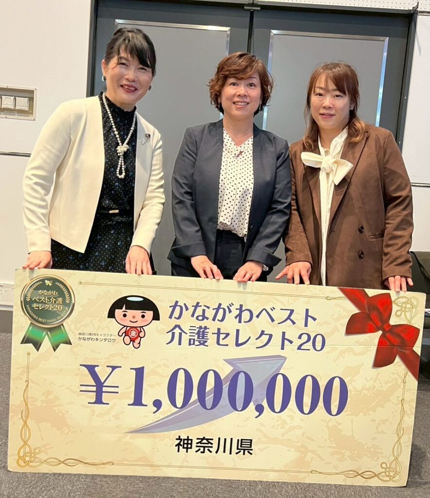 この短い期間で、かながわ介護ベストセレクト20という栄誉ある賞をいただけたことは、 私たちにとって本当に大きな励みです。